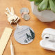 A lovely winter scene of a snow filled forest of dark green spruce and fir trees and a pale grey sky decorates this holiday wedding keychain. This modern drawing of a snowy nature landscape is perfect for a December or January evening wedding favour.