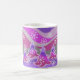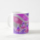 A modern, stylised winter landscape with frosted pine trees and sparkling snowflakes. Mug with a purple, pink, silver grey and white customisable design for you to personalise with your own text, images and ideas. Available in all style options. A digitally enhanced coloured pencil drawing by Jess Perry.