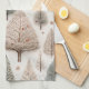 A kitchen towel showcasing an enchanting collection of winter trees illustrated in a soft and detailed style. It features a variety of tree types—lush evergreens, delicate bare branches, and stylized botanical forms—in muted hues of sage green, dusty rose, warm beige, taupe, and soft cream against a light neutral background. This is perfect for nature lovers, minimal holiday decorators, botanical art fans, and anyone who enjoys calm, elegant winter aesthetics.