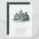 Elegant festive Christmas Party Invitation. Design features a classic white background with winter fir trees covered in snow and magical fairy lights and real gold foil stars. The modern template is easy to customise and add your own holiday event details. Perfect for family or corporate christmas parties!