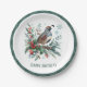 Birthday paper plates featuring a watercolor California Quail. Winter vibes, snowflakes. Customisable.