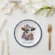 Birthday paper plates featuring a watercolor Cow. Winter vibes, snowflakes. Customisable.