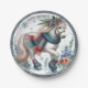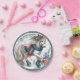Birthday paper plates featuring a watercolor Horse. Winter vibes, snowflakes. Customisable.