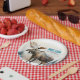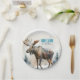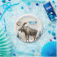Cute birthday party paper plate featuring a moose celebrating winter. For winter-born kids. Customise this product by adding your party information.