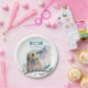 Cute birthday party paper plate featuring a seal celebrating winter. For winter-born kids. Customise this product by adding your party information.