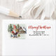 This stylish holiday address labels features a stunning watercolor illustration cute Scandinavian gnome in winter village and red modern script typography that says "Merry Christmas" on a white background.