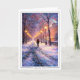Winter Walk Under Streetlights – Impressionist Card