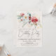 Red and white winter watercolor flowers are nestled in soft sage green leaves and foliage. Gold snowflakes add a festive touch. An elegant, simple and modern script gives it a open and airy vibe. There is also a winter floral boquet on the back.