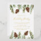 Elegant holiday party invitations featuring brown watercolor pine cones and green pine branches at the top and bottom of the invite. Personalise the pine cone holiday invitations by adding your party details in real gold foil lettering. The gold foil holiday party invites reverse to a solid forest green background. The pinecone invitations are perfect for holiday and Christmas parties. Designed to coordinate with our Winter Watercolor Pine Cone collection.
