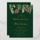 Invite guests to your winter wedding with our beautiful Watercolor Pinecone wedding invitations. The invitations feature a top border of brown watercolor pine cones and green pine branches on a forest green background. Personalise the pine cone wedding invitations by adding your names in a modern gold foil calligraphy script and details below. The invites reverse to a solid forest green background. Perfect for winter and holiday weddings. Designed to coordinate with our Winter Watercolor Pine Cone wedding collection.