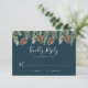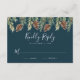 Elegant, rustic wedding RSVP card featuring a top border of brown watercolor pine cones and green pine branches with a navy background. Personalise the winter wedding RSVP card by adding your preferred response date and custom accepts/regrets wording. The card reverses to a solid beige colour. Designed to coordinate with our Winter Watercolor Pine Cone wedding collection. An elegant response card perfect for winter weddings.