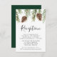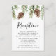 Rustic wedding reception card featuring a top border of watercolor pinecones and pine boughs. "Reception" is displayed in a modern calligraphy script with your wedding reception details shown below. Designed to coordinate with our Winter Watercolor Pinecone wedding collection.