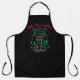 Modern holiday themed apron features colourfully embellished "Oh the weather outside is frightful, but the wine is so delightful" text on black background