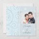 Winter Holiday Wedding photo invitations in classic blue and white with elegant snowflake and swirl design, Customisable with your wedding details, your names and your own photo. Available in matching winter holiday stamps, envelopes, labels and cards. Perfect for a winter or Christmas wedding.