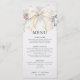 Celebrate the season with a luxurious winter-themed menu inspired by a romantic winter garden. Featuring elegant cream accents, soft floral arrangements in blush pink and dusty blue, and touches of white roses, eucalyptus, and pinecones, this menu embodies the warmth and sophistication of a winter wedding.
