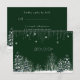Pretty wedding response card with beautiful dark green background, it has delicate snowflakes, White Winter Trees, Pine Trees and hanging white lights.