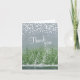 Winter wedding or other winter event, green gray thank you cards. Watercolor and gouache painting features pine trees covered in snow by the lake in shades of green, gray and white. Art and design by Sarah Trett for www.mylittleedenweddings.com on zazzle.