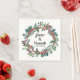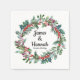 Custom Christmas wedding paper napkin, Personalised Couple name date favour, mr and mrs reception serviette, just married newly wed decor, modern bride groom winter holiday, December January elegant classic script, engagement party holly branches greenery, keepsake personalised white green red, berries botanical rustic farmhouse barn, vintage watercolor pine fir foliage