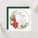 Square format invitation. Simple. Modern. Elegant. Ideal for a winter wedding, this floral watercolor Christmas seasonal artwork was created by artist, Audrey Jeanne Roberts. Featuring: Geometric wreath decorated with red poinsettia flowers, holly with berries, mistletoe, white wild rose flowers with pine cones and sprigs. Copyright.