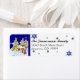 COLOR PALETTE: Modern Christmas Trend of Blue and White with lime yellow, gold, green and red. DESIGN COLLECTION: Personalised with your own family name and address, using the easy template field, you can create your own custom return adddress labels, package toppers or envelope seals. This is whimsical, fun, Christmas and Winter themed sticker, seal or package decoration set that has been made of hand panted watercolor artwork from Audrey Jeanne Roberts. The Christmas trees are decorated with a draped red garland, swirling star tree toppers in piles of snow with hand made star snowflakes falling in the background and a cute penguin is playing with a stack of gift wrapped packages topped with a red bow and a cute, whimsical bird with a swirl tail. There are also red snowflake stars in the background of the label. This design is available on a wide range of products.