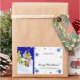 COLOR PALETTE: Modern Christmas Trend of Blue and White with lime yellow, gold, green and red. DESIGN COLLECTION: With the text, "A Gift For: and Merry Christmas, from your family name", this is a whimsical, fun, Christmas and Winter themed gift package topper sticker, seal or decoration set that has been made of hand panted watercolor artwork from Audrey Jeanne Roberts. The Christmas trees are decorated with a draped red garland, swirling star tree toppers in piles of snow with hand made star snowflakes falling in the background and baby polar bears playing with each other with bows around their necks. This design is available on a wide range of products.