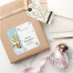 COLOR PALETTE: Modern Christmas Trend of Light Blue and White with lime yellow, gold, green and red. DESIGN COLLECTION: With the text, "A Gift For: and Merry Christmas, from your family name", this is a whimsical, fun, Christmas and Winter themed gift package topper sticker, seal or decoration set that has been made of hand panted watercolor artwork from Audrey Jeanne Roberts. The Christmas trees are decorated with a draped red garland, swirling star tree toppers in piles of snow with hand made star snowflakes falling in the background and baby polar bears playing with each other with bows around their necks. This design is available on a wide range of products.