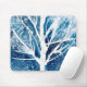 Winter theme blue and white watercolor painting of a white birch tree with snow background. Arty original artwork with a Christmas theme. Blue and white Christmas.