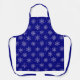 Chic winter or Christmas apron design features white snowflakes on royal blue pattern. Several different snowflake designs make it interesting visually.