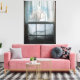 A spring themed curtain frames a window looking out into a winter snowdrift.