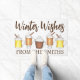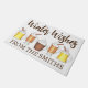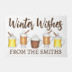 This doormat design features an original illustration of a row of warm winter drinks (hot buttered rum, hot cocoa, egg nog) with WINTER WISHES in a fun font. Just personalise with your information.