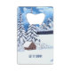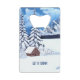 A bottle opener with a beautiful winter scene including snowy mountains, rustic cabin and snow covered evergreens. The image and text can be personalised. You also have the option to delete the text. Original artwork by W.B.
