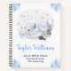 This cute and whimsical notebook features a watercolor winter wonderland scene with adorable arctic animals, such as a polar bear, penguin, cat, whale, seal and a moose. In the background are snow capped mountains, ice caps and trees. Falling snowflakes and beautiful blue floral arrangements give a winter feel. The text combines handwritten script and sans serif fonts for a stylish and modern look. It can be personalised with your baby's birth stats, such as name, size, date and time of birth, or if you would like to give it as a shower gift you are able to edit and remove text.