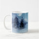 Beautiful snowy winter wonderland at night, with moon and stars.