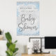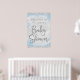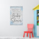 Winter wonderland baby shower welcome sign with pretty silver letters on a silver blue snowflake background. This winter wonderland snowflake baby shower welcome sign is easily customized for your event by simply adding your details.