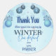 A winter wonderland birthday for a boy thank you sticker for a year old birthday with blue colour winter ornaments and snowflakes. Perfect for 1st birthday invitation for the baby boy.