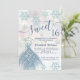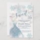 Winter wonderland blue dress glittery ombre snowflakes Sweet 16 invitation.