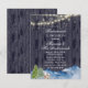 You will love this watercolor navy blue wood background with string of snow lights, watercolor blue mountains, green Christmas trees, Christmas candles and snow. Great for a winter wedding!