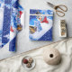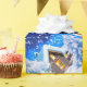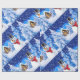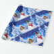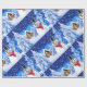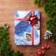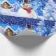 Winter wonderland Christmas wrapping paper. Cute winking snowman in a magical snowy winter setting.