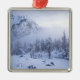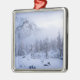 Winter wonderland, fog, spruce forest and mountain metal tree decoration