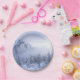 Winter wonderland, fog, spruce forest and mountain paper plate