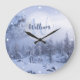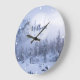 Winter wonderland fog spruce forest snow monogram large clock