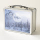Winter wonderland fog spruce forest snow monogram metal lunch box