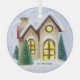 This soothing Winter Wonderland Glass Christmas ornament is very soothing to look at. A beautiful house at night nestled between vibrant coloured Fraser fir trees amidst the snow. Change the family name to your other name or whatever text you desire.