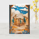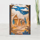 This enchanting Christmas card features a layered paper-cut style winter scene, with snowy hills, tall evergreens, and a cosy cabin nestled beneath drifting clouds and falling snowflakes. The rich blend of golden tones, icy whites, and deep blue sky creates a magical holiday atmosphere that feels both elegant and heartwarming. Perfect for sending season’s greetings, it captures the quiet beauty and wonder of Christmas in a snowy woodland.