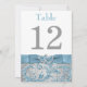 Continue the theme of your Christmas or winter wedding with this elegant double-sided 5"x7" ice blue, silver grey floral FAUX glitter damask pattern wedding reception table number card that has a background of assorted white snowflakes on it and a PRINTED steel blue ribbon and bow with a pair of diamond jewels and FAUX blue glitter joined hearts on it. It would be perfect for a winter wonderland theme or for a Christmas or New Year's Eve wedding. ***PLEASE NOTE there are no raised elements on this invitation. Everything is printed flat. It is shown here on basic paper, but could stand easily on its own with the premium triple thick paper. **You MUST change the number 12 to each of the table numbers you need, add it to your cart, and then return and repeat the process until you have all the individually numbered cards that you need in your cart. Stand it on a small easel, or in your centerpieces.***PLEASE NOTE that if you change the fonts or size of the fonts, it may alter how your card prints. It will print the way you see it on your monitor, so if you have alignment issues, or sizing problems, please contact me for help BEFORE you order. I will not see your card once you order it, and Zazzle will NOT edit anything (typos, alignment, etc.). If you require assistance or would like any other matching items, or a different colour combination, please email your request to niteowlstudio@gmail.com.