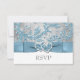 ****Please note that the ribbon, bow, glitter and joined hearts are PRINTED ON images, and are not real. This elegant ice blue, silver grey floral FAUX glitter damask pattern wedding rsvp card has a background of assorted white snowflakes on it and a PRINTED steel blue ribbon and bow with a pair of diamond jewels and FAUX glitter joined hearts on it that matches the winter wedding invitation shown below. It would be perfect for a winter wedding with a winter wonderland theme, or for a Christmas or New Year's Eve wedding. If you require any other matching items, or would like it in another colour combination, please email niteowlstudio@gmail.com with your request.