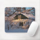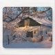 Early morning sunrise shines on a fresh shroud of snow covering the fields and barn.