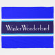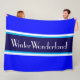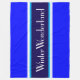 This festive seasonal design features WINTER WONDERLAND text inside a wide navy center stripe adjoined by white, sky blue, and royal blue outer stripes.