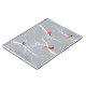 Lovely winter scene with white branches, colourful birds and a falling snow.