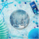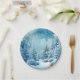 Pretty paper plates with an image of a beautiful, snow covered pine tree forest. A lovely Winter day with blue sky and falling snow.